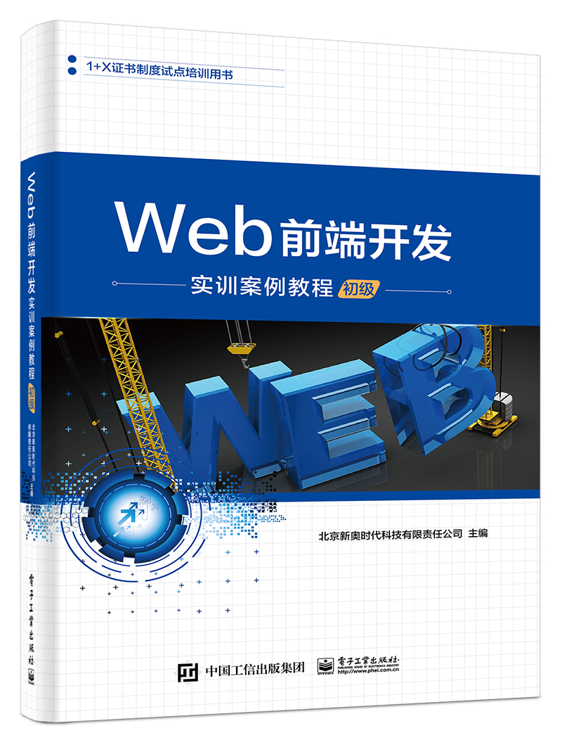 為貫徹落實《國家職業教育改革實施方案》,積極推動1+X證書制度的實施,北京新奧時代科技有限責任公司組織編寫了Web前端開發實訓案例教程的相關教材。教材的編寫按照《Web前端開發職業技能等級標準》編寫的配套實踐教材,教材中所有應用技術專題和項目代碼均在主流瀏覽器中運行通過。
